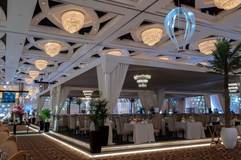 وترحب خيمة قاعة المملكة بالضيوف بزخارف فاخرة تنضح بالأناقة العربية. تعرض الخيمة لمسات باللونين الأبيض والذهبي جنبًا إلى جنب مع الحلي ذات المظهر التقليدي الفاتن لتجربة فاخرة حقًا تكمل روائع فنون الطهي.