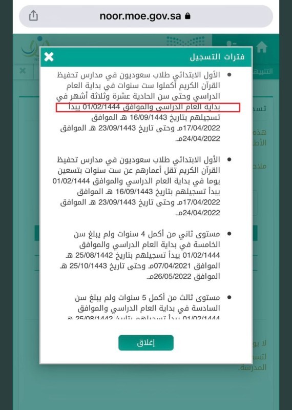 وكانت الرسالة التي وضحت فيها تواريخ وفترات تسجيل الطلاب المستجدين وكتب فيها: «بداية العام الدراسي الموافق ١ / ٢ / ١٤٤٤هـ»، ظهرت لعدد من مستخدمي نظام نور، الأمر الذي دفع الكثيرين إلى تبادل معلومة موثقة مصدرها موقع رسمي تابع لوزارة التعليم يخبر أن موعد بدء الدراسة سيكون بهذا التاريخ، وهو ما سيمنح الطلاب والمعلمين إجازة شهرين كاملين.