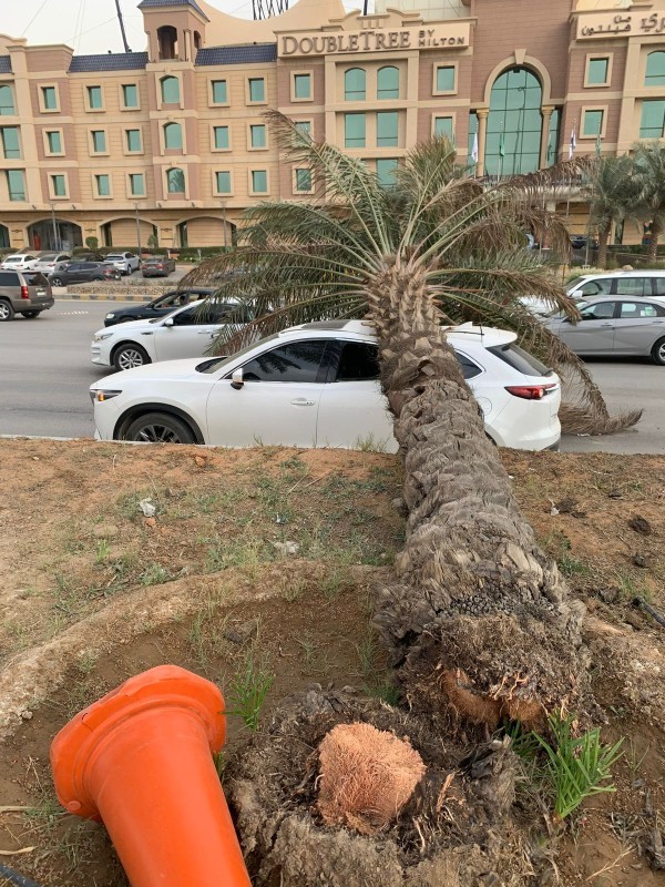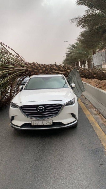 وأضاف: «فضلت البقاء في سيارتي وعدم النزول وسط تلك الرياح القوية وتطاير الأجسام الصلبة من حولي، وبعد دقائق هدأ الجو وعند نزولي من المركبة كانت المفاجأة وجود نخلة عملاقة على مركبتي ألحقت بها أضراراً جسيمة».