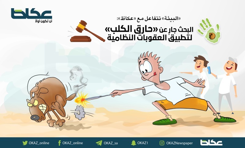 وكانت «عكاظ» نشرت في وقت سابق، (السبت)، مقطع فيديو جرى تداوله عبر مواقع التواصل الاجتماعي يظهر فيه شخص يقوم بالإساءة لحيوان (كلب) بحرقه باستخدام الألعاب النارية، ما أثار استياء رواد مواقع التواصل الاجتماعي الذين طالبوا بضرورة التوصل لهذا الشخص وتطبيق العقوبات النظامية بحقه.