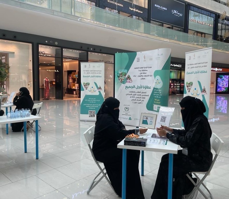 نيابة عن مدير عام التعليم بجدة، دشنت المساعدة للشؤون التعليمية منال اللهيبي، مساء اليوم (الثلاثاء)، مبادرة «عطاؤنا لأجل الجميع»، التي تنفذها إدارة الاختبارات والقبول (بنات) بمركز (العرب مول)، وتستمر ثلاثة أيام، خلال الفترة المسائية.