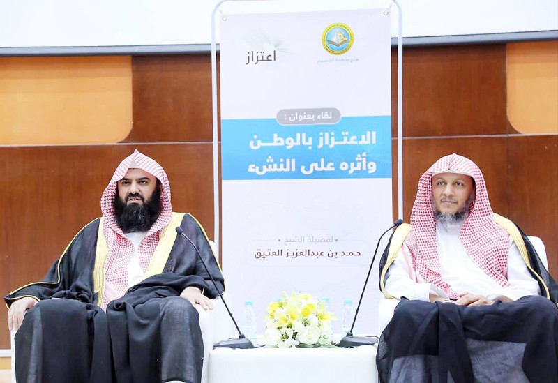 بيان مخاطر الجماعات المنحرفة والحزبية وأهمية مبدأ الاعتزاز بالوطن، وتصحيح العقائد، ومنهج بعض دعاة الضلال وإيضاح ما تأسست عليه (بلاد الحرمين الشريفين) من تحكيم شريعة الإسلام واتخاذ الكتاب والسنة دستوراً لها، والتحذير مما يقومون به من دعوة إلى التحزب والتفرق والاختلاف، والدعوة للمحافظة على أمن الوطن وطاعة ولاة أمره واتباع العلماء المعتبرين، كان لقاء علمياً نظمته وحدة الأمن الفكري بالرئاسة العامة لهيئة الأمر بالمعروف والنهي عن المنكر أمس في بريدة، لفضيلة الشيخ حمد بن عبدالعزيز العتيق بعنوان: (الاعتزاز بالوطن وأثره على النشء) بحضور منسوبي فرع منطقة القصيم، بدأه مدير عام فرع الرئاسة العامة بمنطقة القصيم الشيخ الدكتور محمد بن عبدالله القرني، بالإشارة الى أهمية التثقيف والتوعية والاعتزاز بالوطن، واختتمه بالشكر والثناء لولاة الأمر والمسؤولين لتحقيق وإقامة هذه اللقاءات، لما لها من أثر على تأصيل مفهوم الولاء والدعوة إلى وحدة الصف والاجتماع لتحقيق حياة كريمة يسودها الأمن والأمان.