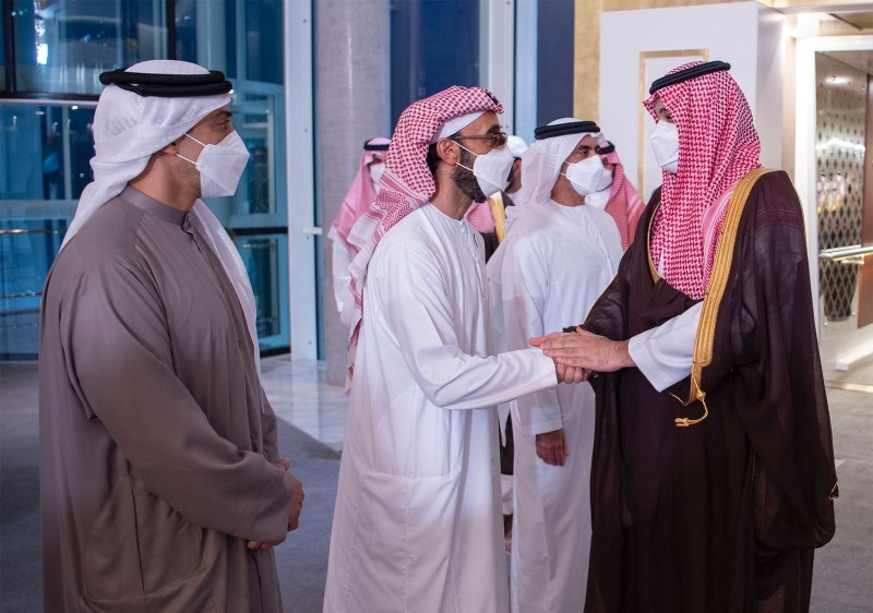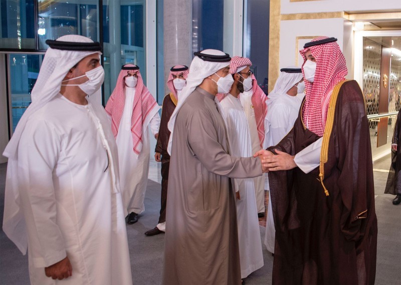 وكان في استقبال ولي العهد، بمطار الرئاسة في أبوظبي، رئيس دولة الإمارات العربية المتحدة الشيخ محمد بن زايد آل نهيان.