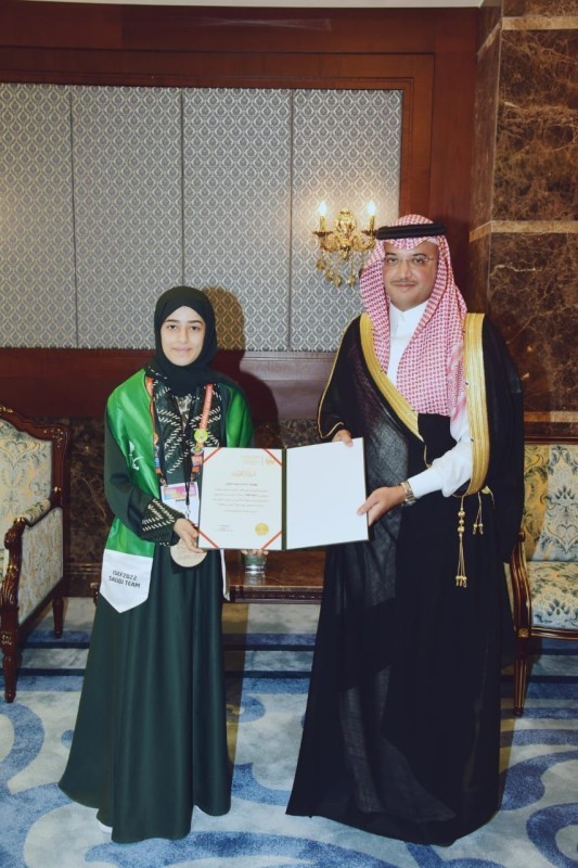 استقبل محافظ الأحساء الأمير سعود بن طلال بن بدر آل سعود في مكتبه بديوان المحافظة اليوم (الثلاثاء) الطالبة دانة محمد العيثان الحائزة على المركز الأول على مستوى العالم في مجال الكيمياء في المعرض الدولي للعلوم والهندسة آيسف 2022، يرافقها مدير عام التعليم بالمحافظة حمد بن محمد العيسى، ووالد ووالدة الطالبة.