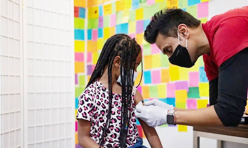 طفلة أمريكية (5 سنوات) تخضع لتطعيم كوفيد في بنسلفانيا. (وكالات)