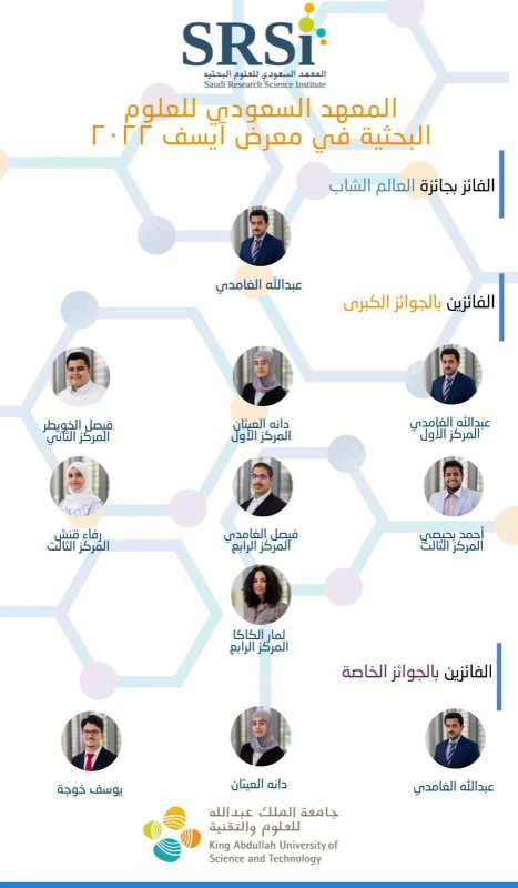 وكان 35 طالباً وطالبة سعوديين شاركوا في مسابقة معرض «آيسف» 2022، وهو أكبر وفد سعودي على الإطلاق يشارك في هذه المحفل الدولي. وكان 16 من هؤلاء الطلبة من خريجي برنامج «SRSI» في كاوست. وتعتبر هذه الجوائز الـ8 التي فاز بها خريجو برنامج المعهد السعودي للعلوم البحثية «SRSI» أعلى إنجاز جماعي لطلبة البرنامج في تاريخ المشاركات في معرض «آيسف».