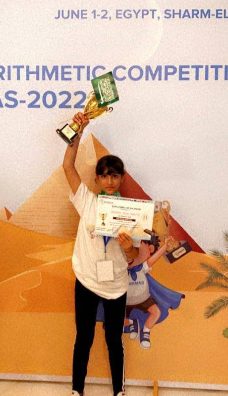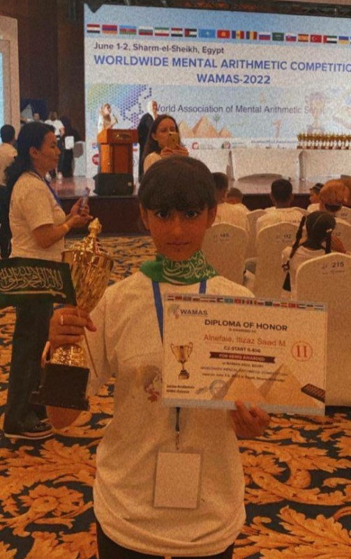 وفازت الطالبة اعتزاز النفيعي بالمركز الثاني في المسابقة العالمية للحساب الذهني العبقري الصغير والمقامة في مصر العربية.