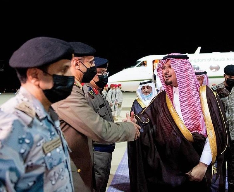 حضرَ الاستقبالَ في المطار قياداتُ الإمارة، وعددٌ من القيادات العسكرية بالمنطقة، ومديرو الإدارات الحكومية.