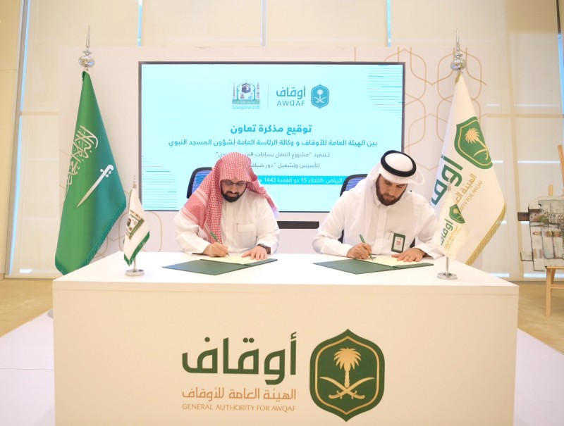 وقع وكيل الرئيس العام للحوكمة والشؤون القانونية والتطويرية الدكتور نبيل اللحيدان، اتفاقية مع الهيئة العامة للأوقاف لتنفيذ مشروع التنقل؛ تسهيلاً لتنقّل زائري المسجد النبوي من كبار السن والمرضى داخل ساحات المسجد النبوي وعلى المخارج والمداخل المؤدية إليه.