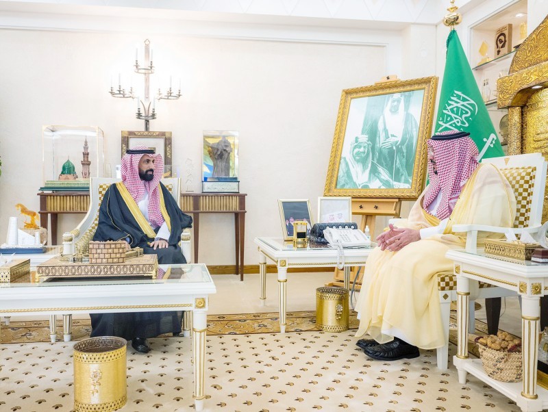 أمير القصيم خلال استقباله مدير جمعية الثقافة والفنون بالمنطقة محمد العتيبي.