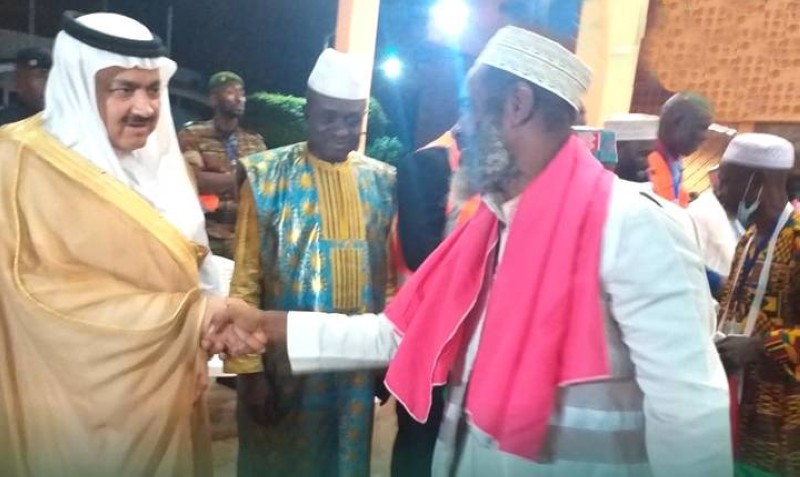 السفير حسين الدخيل الله خلال توديعه الفوج الأول لحجاج غينيا.