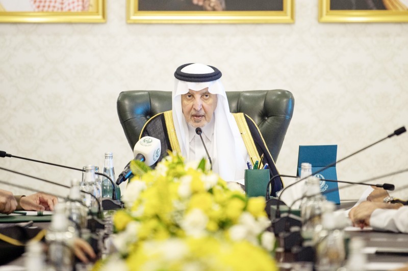 أمير مكة خلال ترؤسه أمس لجنة الحج المركزية بمشعر مزدلفة.