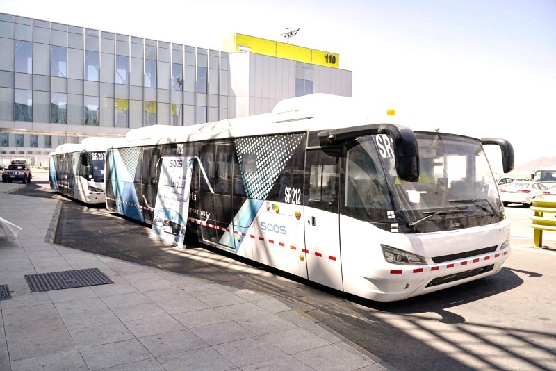 وبدأت خدمات التشغيل الفعلي للحافلات التي تعمل بالطاقة الكهربائية والمزودة بالعديد من التجهيزات التقنية والمعدات، علاوة على تزويد كل حافلة بـ4 كاميرات لتسجيل وتوثيق جميع المعلومات والوقائع داخل الحافلة، إذ خضعت الحافلات لأعلى المعايير للتأكد من سلامة وأمان الركاب بالمطارات، ويبلغ طول الحافلة نحو الـ9 أمتار، ويمكن أن تقطع أكثر من 300 كيلومتر، قبل التزود من جديد بالطاقة، الذي يستغرق أقل من ساعتين.