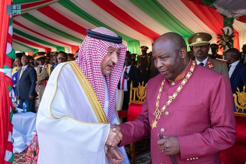 ونقل نائب وزير الخارجية خلال مراسم الاحتفال، تهنئة وتحيات خادم الحرمين الشريفين، وولي العهد نائب رئيس مجلس الوزراء الأمير محمد بن سلمان بن عبدالعزيز، لرئيس جمهورية بوروندي إيفاريست ندايشيمي بمناسبة ذكرى الاستقلال، وتمنياتهما له بالتوفيق والسداد، ولحكومة وشعب جمهورية بوروندي الصديق المزيد من التقدم والازدهار.