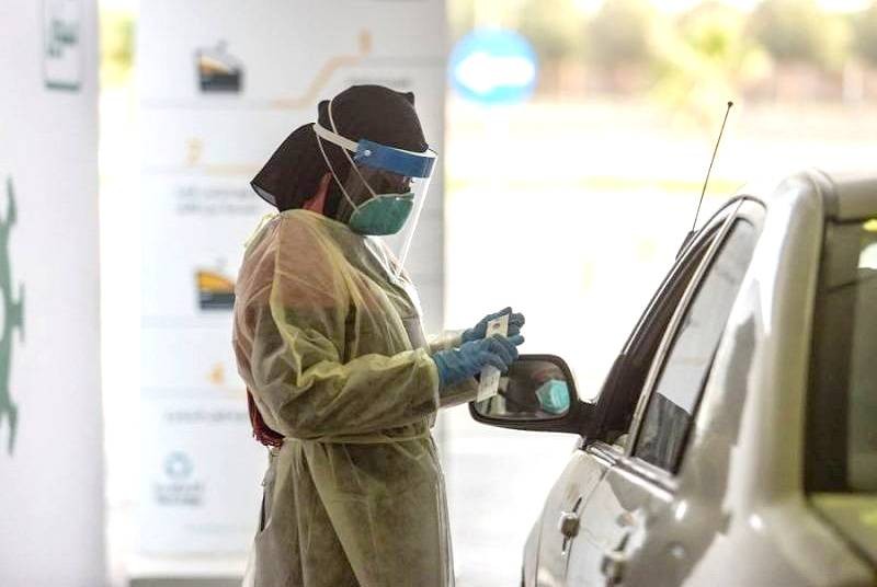 مختصة تجري فحصاً لفايروس كورونا في مركز صحي. (صحة المدينة المنورة)