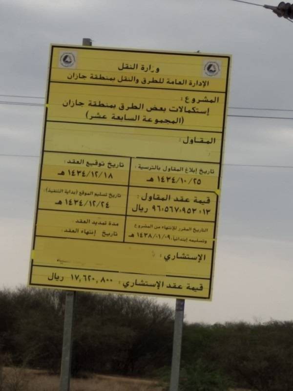 «عكاظ» رصدت تشققات الطرق في قرى المحافظة خصوصاً مع هطول الأمطار، فيما رصدت لوحة لمشروع يصل تكلفته إلى أكثر من 96 مليون ريال، أشار الأهالي إلى أنه متعثر منذ أكثر من 10 سنوات.