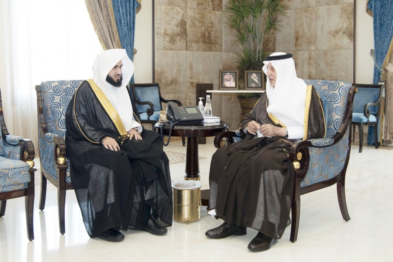 أمير مكة خلال استقباله رئيس محكمة جدة الشيخ عبدالله العضيبي.