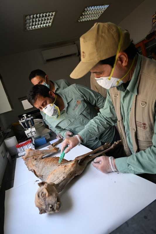 وكان المركز قد أعلن أمس (الأربعاء) العثور على جثث 17 فهداً صياداً في أحد الدحول في شمال السعودية منها مومياوات محتفظة بجميع تفاصيلها.