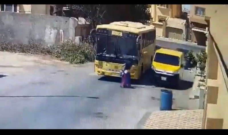 وكان قائد الحافلة المدرسية قد نزل مع الطالبة خلال وصولها إلى منزل أسرتها وخلال ثوانٍ عبرت سيارة نقل بشكل مستهتر ومخالف كاد يعرض حياة الطالبة للخطر، ليقوم قائد الحافلة بالإمساك بحقيبتها بعد أن شاهد الطالبة تسير مسرعة نحو باب مسكنها في اللحظة التي عبرت فيه سيارة النقل بكل استهتار.