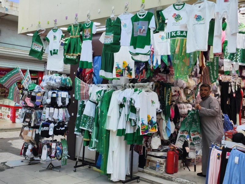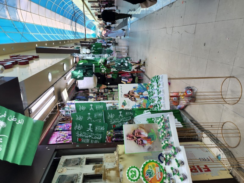 تزينت الأسواق التجارية والشوارع في محافظة الطائف باللون الأخضر حيث حرص أصحاب المحال التجارية على تزيين واجهات المحلات بالأعلام وعبارات التهاني والتبريكات قبل عرض الأعلام والملابس التي توشحت باللون الأخضر.