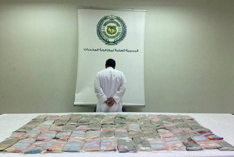 قبضت المديرية العامة لمكافحة المخدرات على مواطن في منطقة الرياض، بحوزته 70 كيلوغراماً من مادة الحشيش المخدر.