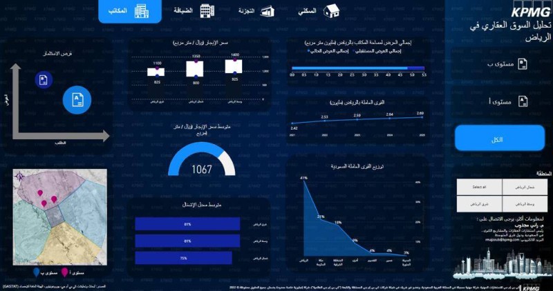 أصدرت شركة كي بي إم جي للاستشارات المهنية في المملكة العربية السعودية التقرير الأول من نوعه بعنوان "نظرة عامة على قطاع العقار في الرياض"، سلطت خلاله الضوء على فرص الاستثمار الإرشادية، واتجاهات وأداء السوق العقاري للنصف الأول من عام 2022 والذي يغطي جميع القطاعات العقارية الأساسية الأربعة: السكني، والتجزئة، والمكتبي، والضيافة.