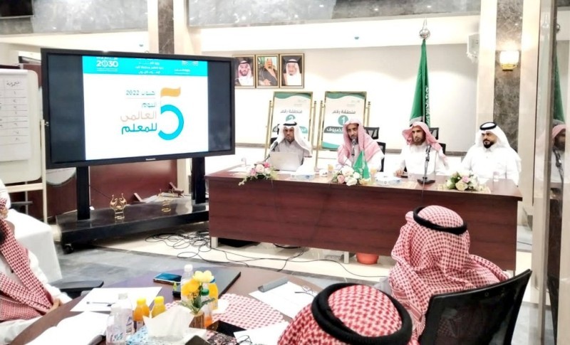 جاء ذلك خلال رعايته اليوم ورشة عمل اليوم العالمي للمعلم 2022 م، والتي أقامتها الإدارة في المبنى الرئيس لها، بحضور المساعد للشؤون التعليمية (بنين) الدكتور محمد بن أحمد النعيري، والمساعد للشؤون المدرسية الدكتور علي بن محمد السوادي، والمساعد للشؤون التعليمية (بنات) هدية بنت محمد البركاتي، وعدد من رؤساء ورئيسات الأقسام، والمشرفين التربويين والمشرفات التربويات ومديري ومديرات المدارس والمعلمين والمعلمات.