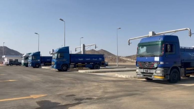 وتم ضخ المياه المحلاة عبر 6 مناهل بطاقة تصميمية تقدر بـ270 صهريجاً يومياً.