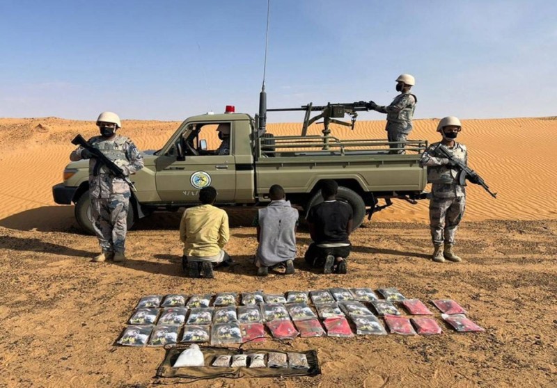 قبضت دوريات حرس الحدود في قطاع شرورة بمنطقة نجران على (3) مخالفين لنظام أمن الحدود من الجنسية الإثيوبية بحوزتهم (36) كيلوجرامًا من مادة الحشيش المخدِّر و(5548) قرص إمفيتامين مخدر و(500) جرام من مادة الشبو المخدر، وجرى استكمال الإجراءات النظامية الأولية بحقهم، وتسليمهم والمهربات لجهة الاختصاص.