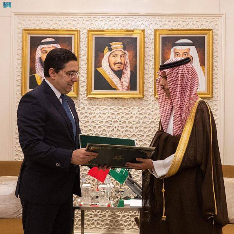 تسلم الرسالتين وزير الخارجية الأمير فيصل بن فرحان بن عبدالله، خلال استقباله بمقر الوزارة (اليوم)، وزير الشؤون الخارجية والتعاون الأفريقي والمغاربة المقيمين بالخارج بالمملكة المغربية ناصر بوريطة.