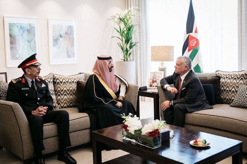 ونقل وزير الحرس الوطني خلال الاستقبال، تحيات خادم الحرمين الشريفين الملك سلمان بن عبدالعزيز آل سعود، وولي العهد رئيس مجلس الوزراء الأمير محمد بن سلمان بن عبدالعزيز، لجلالته ولحكومة وشعب الأردن الشقيق، فيما حمَّله جلالته تحياته وتقديره لخادم الحرمين الشريفين، وولي العهد، وحكومة وشعب المملكة العربية السعودية.