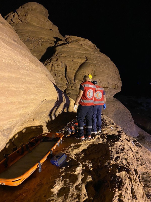 وقال مدير عام فرع الهيئة بمنطقة تبوك نواف مياح العنزي إنه ورد بلاغ لغرفة القيادة والتحكم بالمنطقة عن سقوط مواطن من أحد المرتفعات بطريق شرما تبوك، وبناء عليه تم توجيه فرقة إسعافية من مركز إسعاف نعمي والتي وصلت الموقع، حيث تبيّن أن المصاب بمنطقة جبلية يصعب الوصول إليه، وعلى الفور تم تفعيل فريق الاستجابة للبيئات النائية، والذي يعد أحد فرق الاستجابة النوعية التي فعلها فرع الهيئة بتبوك والتي تم تدريبها وتأهيلها على كيفية التعامل مع مثل هذه الحالات، وعند وصولهم للموقع تمت مباشرة الحالة وتبين بأنه مصاب في العقد الثالث من العمر لديه إصابة في الطرف السفلي، تم تقديم العناية الطبية اللازمة لحين تخليصه من قبل فرق الدفاع المدني ومن ثم نقله لمستشفى الملك سلمان العسكري بتبوك.