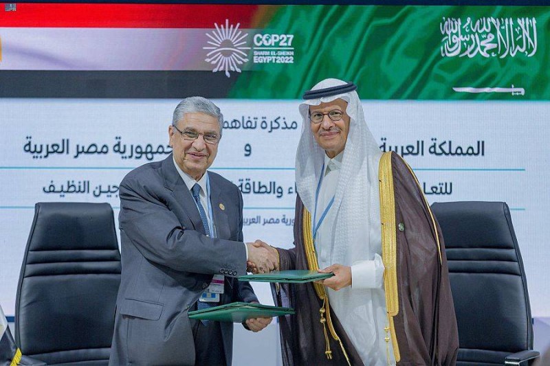وقعت حكومة المملكة العربية السعودية، ممثلة بوزير الطاقة الأمير عبدالعزيز بن سلمان بن عبدالعزيز، وحكومة جمهورية مصر العربية، ممثلة بوزير الكهرباء والطاقة المتجددة الدكتور محمد شاكر المرقبي، مذكرة تفاهم للتعاون بين البلدين الشقيقين في مجالات الكهرباء والطاقة المتجددة والهيدروجين النظيف، سعياً إلى تحقيق تطلعاتهما المشتركة في هذه المجالات، وذلك على هامش اجتماعات المؤتمر الـ27 للدول الأطراف في اتفاقية الأمم المتحدة الإطارية بشأن تغير المناخ (COP27)، المنعقد في مدينة شرم الشيخ.