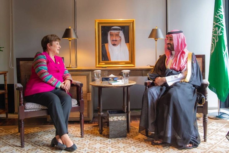التقى ولي العهد رئيس مجلس الوزراء الأمير محمد بن سلمان بن عبدالعزيز آل سعود، رئيس وفد السعودية المشارك في قمة قادة دول مجموعة العشرين في مدينة بالي بجمهورية إندونيسيا، اليوم (الثلاثاء)، المدير العام لصندوق النقد الدولي السيدة كريستالينا غورغييفا، وذلك على هامش انعقاد القمة.