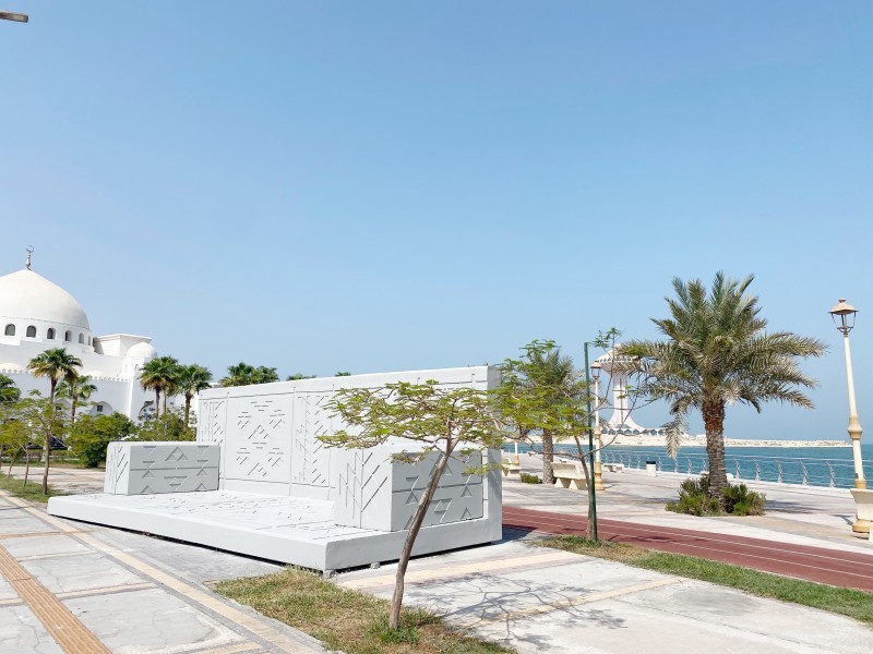 لطالما ارتبطت النقوش والزخارف بعُمق الأعمال الفنّية والرؤى التصويرية، إلا أن مجسّم «نفيس» الذي أهداه مجلس المنطقة الشرقية للمسؤولية الاجتماعية «أبصر»، إحدى مبادرات إمارة المنطقة الشرقية التنموية للمجتمع، يتكئ في وسط مدينة الخبر؛ ليبوح عن وجود علاقة أزلية بين التراث والحضارات ورؤية الجيل القديم والمعاصر، حيث يستند بأحجاره المنحوتة وزخارفه العتيقة؛ ليكون بمثابة رمز للهوية كقطعة خرسانية تستقبل الضيوف، وإن آلت متغيرات عدة على هيئة المجالس بأشكال وألوان وتصاميم مختلفة.