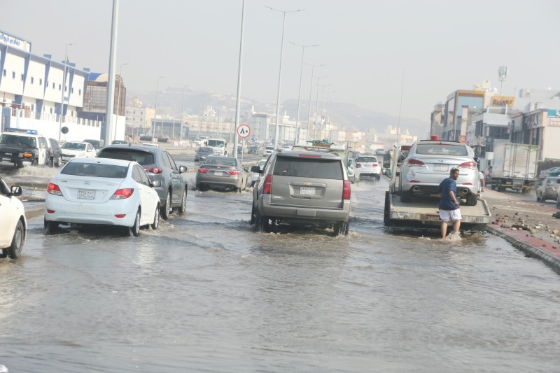 تعطل مروري كبير في الشوارع الرئيسية. (تصوير: مديني عسيري)