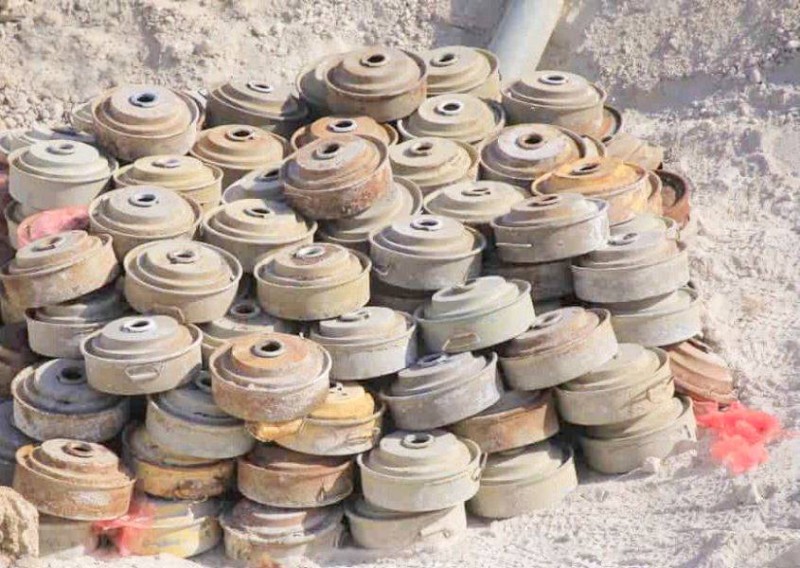 جانب من الألغام المنزوعة التي زرعتها مليشيا الحوثي داخل الأراضي اليمنية.