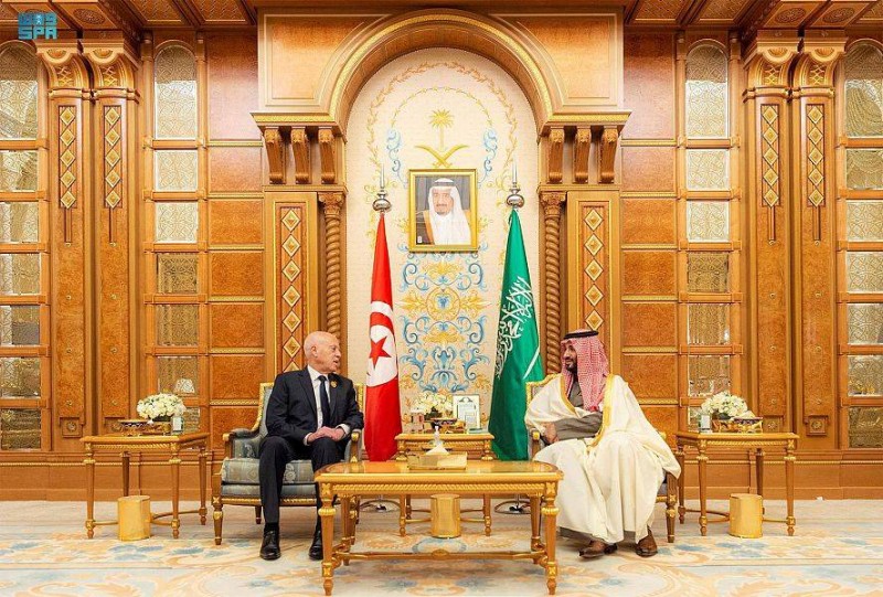 التقى ولي العهد رئيس مجلس الوزراء الأمير محمد بن سلمان بن عبدالعزيز آل سعود، اليوم (الجمعة)، رئيس الجمهورية التونسية قيس سعيِّد، وذلك على هامش انعقاد "قمة الرياض العربية الصينية للتعاون والتنمية" المنعقدة في الرياض.