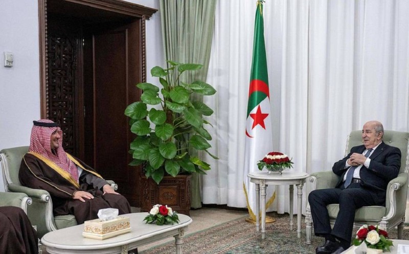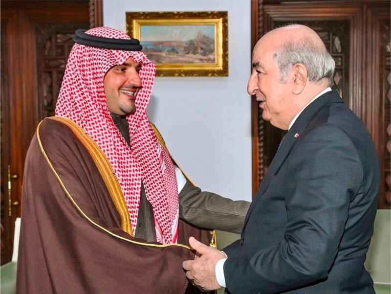 ونقل الأمير عبدالعزيز بن سعود خلال الاستقبال تحيات خادم الحرمين الشريفين الملك سلمان بن عبدالعزيز آل سعود، وولي العهد رئيس مجلس الوزراء الأمير محمد بن سلمان بن عبدالعزيز للرئيس الجزائري، وتمنياتهما لجمهورية الجزائر حكومة وشعبا دوام الرقي والازدهار.