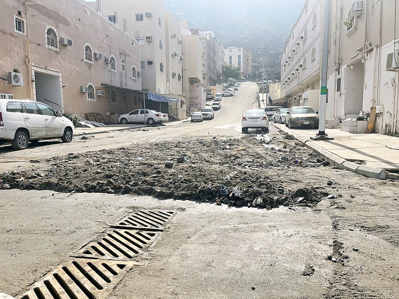 أحد الشوارع تضررت من مياه الأمطار. (عكاظ)