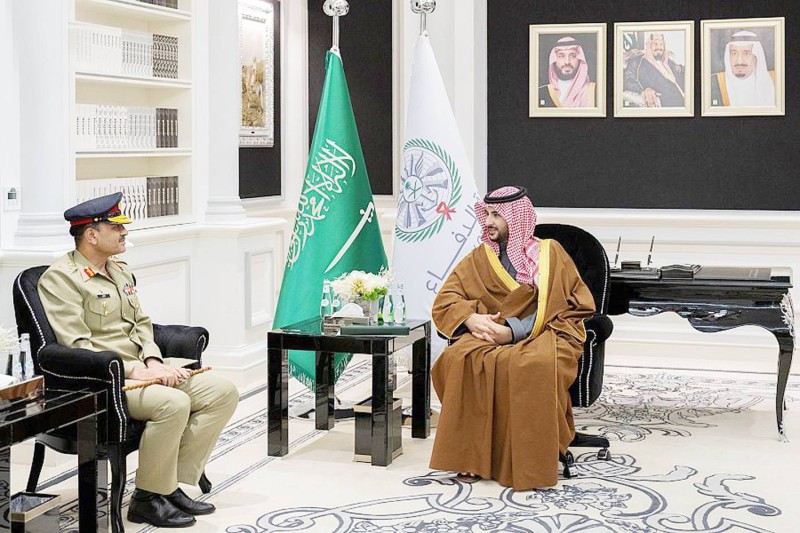 وزير الدفاع يلتقي رئيس أركان الجيش الباكستاني. (واس)