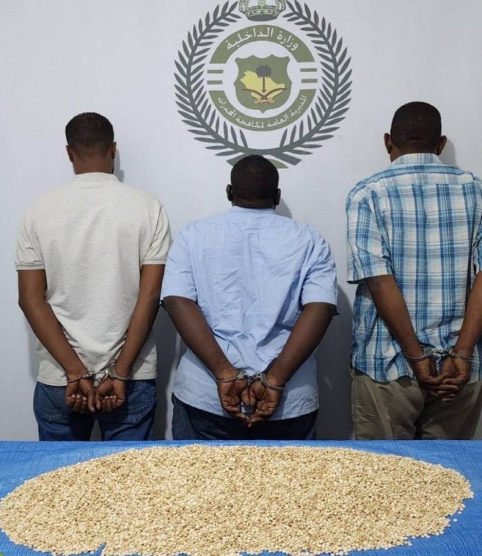قبضت المديرية العامة لمكافحة المخدرات على (3) مقيمين من الجنسية السودانية بمحافظة جدة، بحوزتهم (81,000) قرص من مادة الإمفيتامين المخدر، وجرى إيقافهم واتخاذ الإجراءات النظامية بحقهم، وإحالتهم إلى النيابة العامة.
