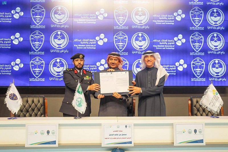 تحت رعاية وزير الداخلية الأمير عبدالعزيز بن سعود بن نايف بن عبدالعزيز، وقع برنامج تطوير وزارة الداخلية، وكلية الملك فهد الأمنية، مذكرة تعاون مع جامعة الملك عبدالله للعلوم والتقنية (كاوست)، بتنفيذ برنامجي الماجستير في مجال الذكاء الاصطناعي والأمن السيبراني، وذلك في قاعة الملك عبدالعزيز للمحاضرات بالكلية، بحضور مساعد وزير الداخلية لشؤون التقنية صاحب السمو الأمير الدكتور بندر بن عبدالله بن مشاري، ومعالي مساعد وزير الداخلية لشؤون العمليات الفريق أول ركن سعيد بن عبدالله القحطاني، وأصحاب المعالي والسعادة، حيث وقعها كل من الرئيس التنفيذي لبرنامج تطوير وزارة الداخلية المهندس نبيل بن خالد الدبل، ومدير عام كلية الملك فهد الأمنية اللواء الدكتور علي بن عبدالرحمن الدعيج، ونائب رئيس جامعة الملك عبدالله للعلوم والتقنية للشؤون الحكومية سليمان بن محمد الثنيان.