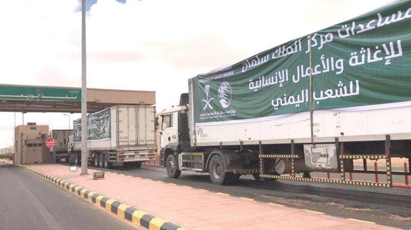 شاحنات الإغاثة تعبر منفذ الوديعة الحدودي. (واس)