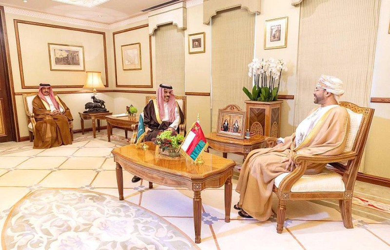 وزيرا الخارجية السعودي والعماني أثناء مباحثاتهما أمس في مسقط. (واس)