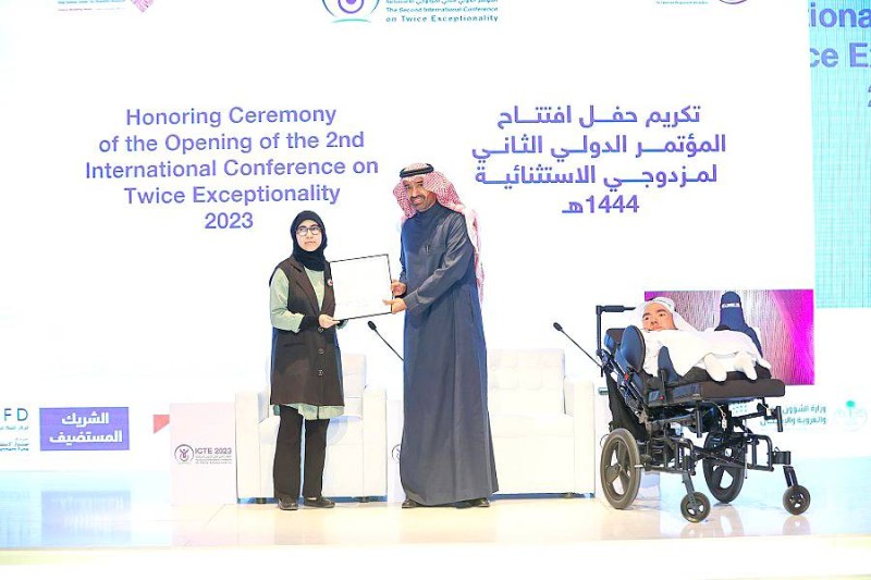 وكان وزير الموارد افتتح أمس أعمال النسخة الثانية من المؤتمر الدولي لمزدوجي الاستثنائية، وأوضح في كلمته أن «رؤية المملكة 2030 منحتنا فرص التمكين والتكامل والشراكة بين مؤسسات المجتمع وأفراده لخدمة الأشخاص ذوي الإعاقة؛ الذين يصل عددهم وفق بيانات هيئة الإحصاء إلى حوالي 1.4 مليون معاق بجميع أنواع الإعاقة».