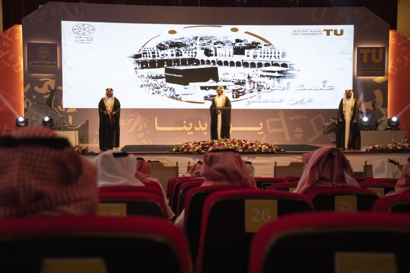 احتفت جامعة الطائف بيوم التأسيس، بتنظيم معرض مصاحب ولوحات فنية وشعرية وعرض مسرحي، في تأكيد على رسوخ هذا الوطن العظيم وتاريخه المجيد، بحضور رئيس الجامعة الدكتور يوسف بن عبده عسيري، ووكلاء الجامعة، وعمداء ووكلاء الكليات، وعدد من أعضاء الهيئتين الأكاديميَّة والإداريَّة، وطلبة الجامعة.