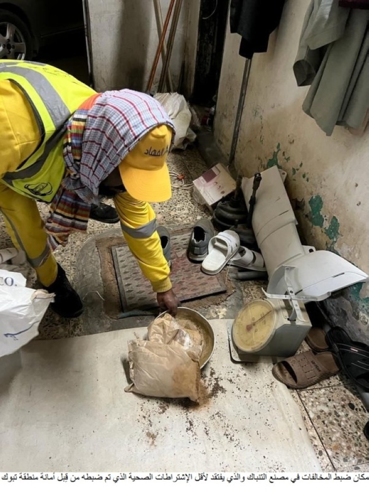 تزامناً مع قرب شهر رمضان المبارك كثفت أمانة منطقة تبوك جولاتها الرقابية على المنشآت التجارية للتأكد من امتثال المنشآت التجارية للاشتراطات البلدية، حيث أسفرت تلك الجولات عن ضبط منشأة تجارية تستخدم منزلاً لتصنيع مادة التنباك وبيعها.