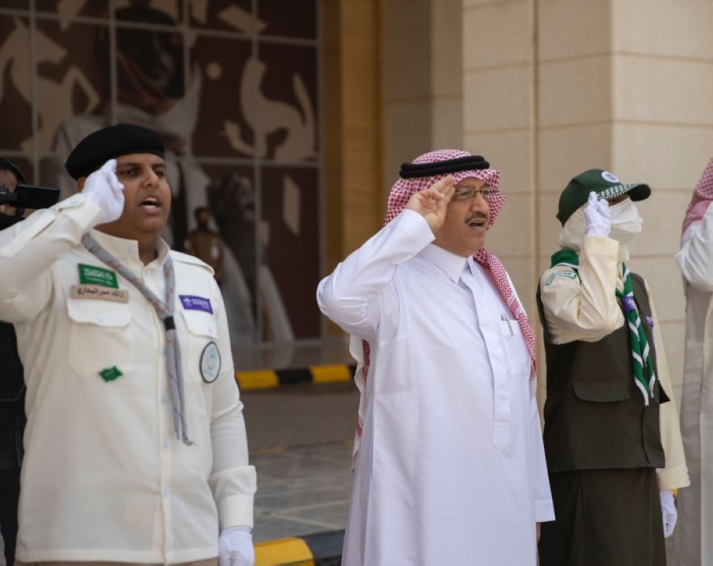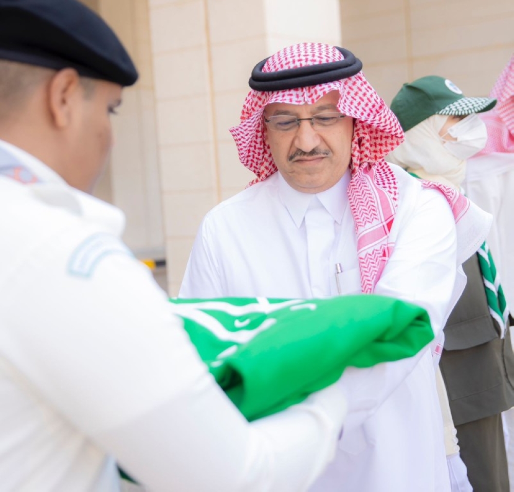 ورفع الوزير البنيان العَلم السعودي؛ بمشاركة فرقة كشفية من طلاب وطالبات التعليم العام على السارية المخصصة له أمام مبنى وزارة التعليم بمصاحبة النشيد الوطني السعودي، وذلك في إطار احتفاء الوزارة بهذه المناسبة الوطنية التي تعبّر عن قيمة العَلم ورمزيته ودلالاته الممتدة عبر تاريخ الدولة السعودية؛ تعزيزاً لقيم المواطنة والانتماء لدى أبناء وبنات الوطن.