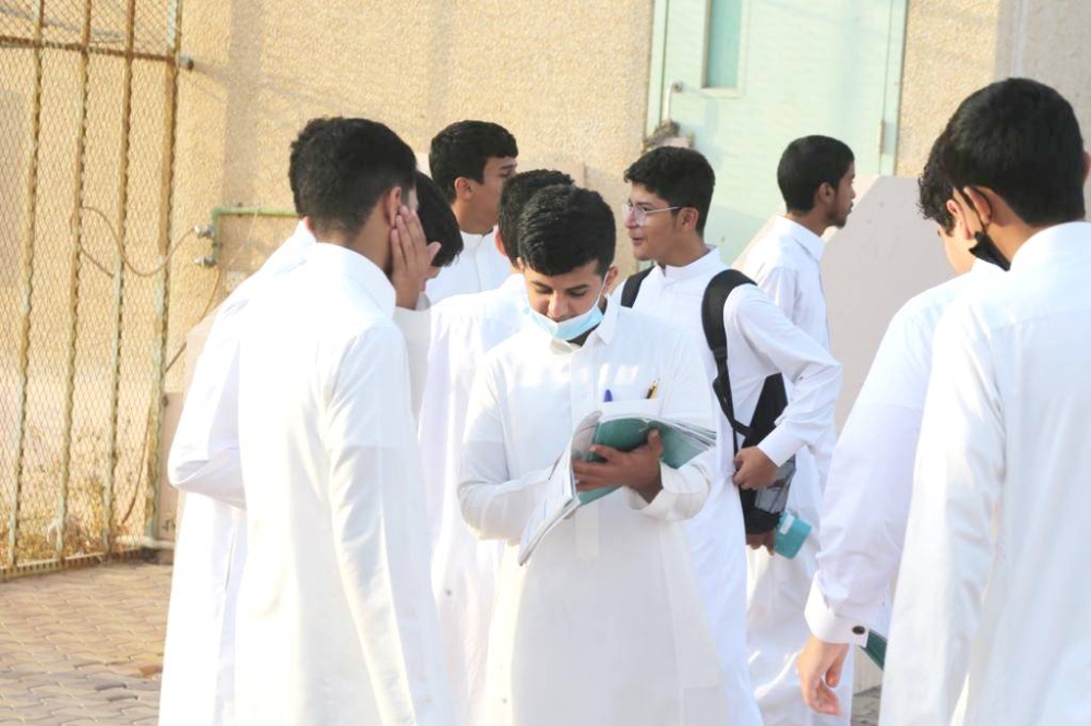 طلاب بمدارس جدة يراجعون إجابات أسئلة الاختبار للفترة الأولى. (أرشيف)